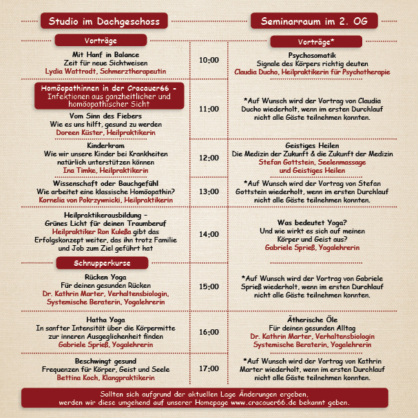 In diesen turbulenten Zeiten ist es besonders wichtig, dass wir auf unseren Körper und unsere Gesundheit achten. Dies beginnt mit Neugier und Wissen. Aus diesem Grund haben wir uns dazu entschieden, trotz – oder gerade wegen – der aktuellen Situation unsere Türen auch in diesem Jahr für Sie zu öffnen.